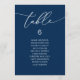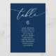 Tarjeta De Cuadro De Mesa Para La Cena boda, Estilo Moderno Y Elegante. Personalizar el texto y / o retira y rellena con el tema de tu fiesta de boda (azul marino).