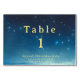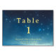 Tarjeta de mesa de vacaciones para navidades con estrellas de colores azul y dorado. Gran número de tabla fiesta suministros para la tabla de Navidades. Mejora tu tabla con tarjetas de número de tabla personalizado. Personalizar el texto. Utilice la plantilla para crear su propia tarjeta de número de tabla azul y dorada de Navidades.