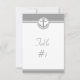 Numere sus mesas de recepción con una tarjeta de mesa de Ancla Náutica Gris. El diseño de la tarjeta de mesa cuenta con un fondo blanco con un borde gris y un adorno de ancla náutica. También hay disponible papelería de boda adicional con este diseño. ¿Necesita ayuda con la personalización? Por favor, póngase en contacto conmigo y trabajaré en la redacción y los detalles para adaptar este diseño a su satisfacción.