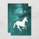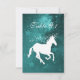 Mesas de recepción con una Verde azulada tarjeta de mesa de la recepción de boda de Unicornio. El diseño de la tarjeta de mesa tiene un fondo estelar con un unicornio adornado con estrellas. También hay material de boda adicional disponible con este diseño.