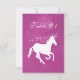 Mesas de recepción con una tarjeta Magenta Unicorn Wedding Reception. El diseño de la tarjeta de mesa tiene un fondo estelar con un unicornio adornado con estrellas. También hay material de boda adicional disponible con este diseño.