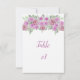 Numere sus mesas de recepción con una tarjeta de mesa de recepción de peonía rosa. El diseño de la tarjeta de mesa presenta un fondo blanco con un ramo de peonías rosadas y follaje verde. También hay papelería de boda adicional disponible con este diseño.