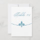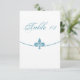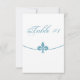 Mesas de recepción con una Verde azulada tarjeta de la recepción Fleur de Lis. El diseño de la tarjeta de mesa incluye un verde azulado fleur de lis. También hay material de boda adicional disponible con este diseño.
