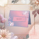 Sumérjase en su boda con unas románticas tarjetas de mesa Boda plegado pastel, perfectas para añadir un toque de elegancia a su organización de mesa. Cada carta tiene un sakura abstracto de flores de cerezo pastel y un polvoriento color de gradiente azul y rosa. Personalice su celebración personalizando cada tarjeta con el número de tabla. Hobinishop