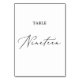 Esta delicada mesa de caligrafía negra de 19 mesas es perfecta para un boda moderno. El romántico diseño minimalista presenta una bonita y elegante tipografía negra sobre un fondo blanco con un aspecto limpio y sencillo. La tarjeta se imprime en la parte delantera y trasera (doble cara). Otros números de tabla de la colección se venden por separado.