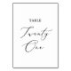 Esta delicada mesa de caligrafía negra de veintiún números de mesa es perfecta para un boda moderno. El romántico diseño minimalista presenta una bonita y elegante tipografía negra sobre un fondo blanco con un aspecto limpio y sencillo. La tarjeta se imprime en la parte delantera y trasera (doble cara). Otros números de tabla de la colección se venden por separado.
