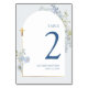 Tarjeta De Mesa Dusty Blue Delphinium Floral Arched Boy Baptism