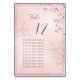 This Chinese wedding seating chart table number cards features pretty dusty pink cherry blossoms on a shimmering shimmering blush pink background. With text boxes to add a list of guest names.