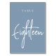 Las tarjetas de número de tabla simples y de moda en Dusty Blue y en blanco hacen una declaración elegante en su boda o evento. Las funciones de diseño "table [number]" se encuentran en una mezcla de letras clásicas de sif y manuscritas. El diseño se repite en ambos lados. Las tarjetas numeradas individualmente se venden por separado; solicite cada número de tabla individualmente de nuestra colección.
