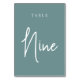Las tarjetas de número de tabla simples y de moda en agua verde azulada polvorienta y blanco hacen una declaración elegante en su boda o evento. Las funciones de diseño "table [number]" se encuentran en una mezcla de letras clásicas de sif y manuscritas. El diseño se repite en ambos lados. Las tarjetas numeradas individualmente se venden por separado; solicite cada número de tabla individualmente de nuestra colección.