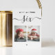 Boda de escritura en blanco y negro Tabla Número de tarjeta "Cuando teníamos edad" con foto del novio y la novia.