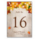 Tarjeta De Mesa El otoño de la madera rústica deja número de tabla