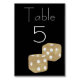 Esta glamorosa tarjeta personalizado número de mesa tiene un diseño de casino dorado y negro. Una imagen de grandes dados purpurinas dorados se imprime en el centro sobre un fondo negro. Puede personalizar la tarjeta de tabla para incluir su propio nombre o texto personalizado.