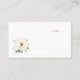 This elegant wedding place card features a beautifully illustrated white peony with vibrant orange stamens, surrounded by lush green leaves. The design employs a minimalistic layout with ample negative space, enhancing the sophisticated and contemporary aesthetic. A simple, clean font in a muted reddish-brown hue complements the botanical motif, creating a refined and calming mood perfect for special occasions. Ideal for adding a touch of understated luxury to your wedding decor, this card is customizable for easy personalization.