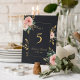 A timeless black wedding table number card adorned with delicate blush roses and refined gold accents. Perfect for classic, romantic, and formal wedding receptions. This sophisticated design adds a graceful touch to your seating arrangement while helping guests find their tables effortlessly.