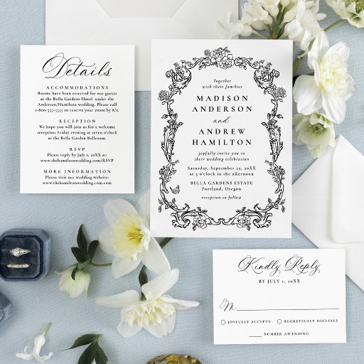 Elegant Black Victorian Floral WeddingDiseñado por Jessica Letterman