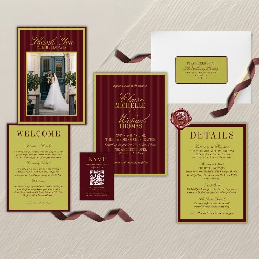 Elegant Chartreuse Burgundy Stripe Formal WeddingDiseñado por Molly H