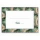This elegant wedding place card features a sophisticated design with a central white space bordered by swirling, marbled patterns in shades of green and gold. The luxurious color palette creates a sense of depth and movement, while the contemporary style blends modern aesthetics with natural inspiration. Customizable text areas allow for personalization, making it perfect for adding names or table numbers. The overall mood is inviting and refined, ideal for creating an atmosphere of elegance at your special event.