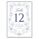 Bring timeless elegance to your reception decor with this Elegant Navy Ornate Floral Frame Wedding Table Number Card. A classic navy blue botanical frame with refined scrolling flourishes surrounds the table number, offering a polished look that pairs beautifully with formal weddings, coastal venues, and traditional navy wedding color palettes. “Table” is displayed in graceful script above a bold, easy-to-read number, while the couple’s names and wedding date are shown below for a cohesive and personalized detail. This navy wedding table number card coordinates seamlessly with classic, estate-inspired, and black- tie wedding stationery suites. This card measures 3.5"x5". Edit each table number individually and add them to your cart to ensure a smooth ordering process.