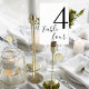 The clean black and white layout creates a refined look that complements a wide range of wedding styles — from modern and chic to romantic and classic. The oversized number ensures visibility from a distance, while the flowing script detail adds softness and personality to each table setting.