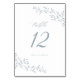 Elegante Rama de Hoja Botánica Dusty Azul Boda Número de Mesa. Elegante caligrafía guión Boda número de tabla