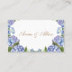 Tarjeta De Mesa Elegante Boda azul hidrangea floral blanco