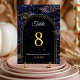 Guíe a sus huéspedes en estilo celeste con este elegante número de mesa Boda celeste místico en negro y oro. Con un fondo negro azul intenso adornado con brillantes estrellas doradas y acentos cósmicos, cada número de mesa aporta un toque de mística y elegancia a la recepción. La refinada tipografía dorada garantiza la legibilidad y, al mismo tiempo, añade un lujoso resplandor a la mesa. Perfecto para una celebración temática estelar, inspirada en la luna o celestial, este diseño mezcla romance y encanto bajo las estrellas.