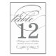 Cada tarjeta de número de tabla debe ser personalizada a través de Personalize it" y añadida individualmente al carrito de la compra. El elegante diseño gris oscuro y blanco incluye un monograma florecido y acentos caligráficos en la parte delantera y trasera de la tarjeta (diseño de dos caras). Nota: el fondo blanco se puede personalizar a un color diferente a través de "personalizar it" - Editar / Color de fondo.