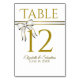 Haga de su recepción de bodas una hermosa con estas tarjetas de número de mesa, y ayude a sus huéspedes a encontrar la mesa correcta. Presenta un diseño sencillo pero elegante con texto dorado sobre un fondo blanco con una imagen de cinta blanca y dorada y arco.