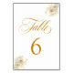 Tarjeta De Mesa Elegante Boda de flores con guión dorado Número 6