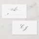 Estas tarjetas de boda de caligrafía minimalista, en blanco y negro, le dan un toque de elegancia a la recepción. Esta plantilla de diseño simple presenta un guión negro con letras a mano moderno sobre un fondo de blanco. La parte trasera de la tarjeta tiene tus monogramas para personalizar los nombres de la novia y del novio. Por favor visita nuestra tienda I Love Weddingz para encontrar más selecciones en esta colección minimalista. Diseñado por la artista Susan Coffey.