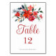 Esta magnífica tarjeta número de mesa boda de Navidades cuenta con una hermosa acuarela de flores rojas de poinsettia y hojas de pino para las vacaciones. Elegante señalización de bodas de invierno para un evento de vacaciones o fiesta. Un cartel de flores de bonito para las mesas de recepción.