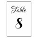 Elegante número de tabla de Boda de texto personalizado de script negro. frase de personalizable, texto, fecha, nombres. Blanco y negro.