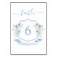 Tarjeta De Mesa Elegante Boda Escudo floral azul blanco