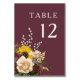 Elegante número de mesa de Boda floral de Borgoña