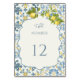 Tarjeta De Mesa Elegante Boda italiano de limón azul en mosaico