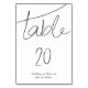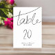 Este elegante número de mesa de boda blanco y negro es perfecto para un boda moderno. el diseño es sencillo y elegante, con una caligrafía negra sobre un fondo blanco.