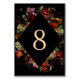 Guíe a sus huéspedes con estilo con este elegante número de mesa de Boda negro floral Moody. Con un rico fondo negro adornado con flores verdes pintadas a mano en tonos burdeos, ciruela, malva y rubor, este número de mesa aporta un sentido de drama y romanticismo a la decoración de la recepción. Los audaces acentos florales enmarcan tipografía clásica, fácil de leer, logrando el equilibrio perfecto entre elegancia y visibilidad. Ideal para bodas nocturnas, en otoño o en invierno, este diseño aporta un toque sofisticado y acogedor a cada mesa.