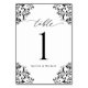 Elegantes números de tabla Boda en blanco y negro: estos pequeños números de tabla en blanco y negro 3.5x5 presentan un diseño de esquinas ornamentadas vintage con un elegante guión caligráfico para un estilo clásico y sofisticado. Cambie sus nombres y añada individualmente a su carrito.