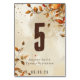 Colores terráneos de hojas de otoño en naranja oxidado. Gran número de mesa en este diseño rústico. Perfecto para una boda de otoño. El mismo diseño en ambos lados.