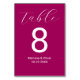 Simple minimalista y elegante guión de caligrafía magenta números de tabla boda.