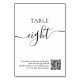 Tarjeta De Mesa Elegante código QR boda de escritura blanco negro