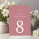 Elegante Chica de la Cruz Religiosa Rosa Primer Número de Mesa de la Comunión.