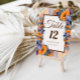 Esta tarjeta de mesa elegante de estilo moderno de verano es perfecta para el número de mesa de su boda simple y elegante de verano. El vibrante estilo de verano acompañado por las flores silvestres minimalistas de acuarela ayudará a dar vida a su visión. Este diseño de hermosas flores naranjas, toques de verde salvia bohemio y púrpura seguramente completará su sueño de boda floral minimalista de verano. Manténgalo como está, o elija personalizarlo con sus fotos. También puede buscar otros artículos de esta colección para unir verdaderamente toda su boda.