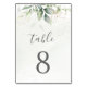 Bonitos números de mesa boda con eucalipto acuarela y hojas de oro. Ideal para los bodas al aire libre.