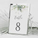Bonitos números de mesa boda con eucalipto acuarela y hojas de oro. Ideal para los bodas al aire libre.
