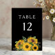 Número de Mesa de Boda Negra Floral Elegante