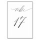 Estas elegantes tarjetas de número de tabla boda blanco presentan un sofisticado diseño minimalista con un guión moderno de caligrafía negra que dice "Tabla 17". Por favor, revisa nuestra tienda I Love Weddingz para más tarjetas de número de tabla en este juego. ¡Mis mejores deseos para su boda y matrimonio! Diseñado por Susan Coffey.