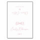 Tarjetas de lugar de boda plegables elegantes presentan un lazo de cinta dibujado a mano con fuentes de escritura modernas y manuscritas en rosa suave. Dulce y simple. Ideal para boda romántica moderna, boda divertida y única, boda elegante y casual.