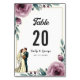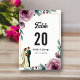 Este elegante número de mesa de boda floral acuático es perfecto para un boda moderno. El diseño romántico presenta un elegante marco floral acuático con un ilustracion de novia y novio y una caligrafía negra sobre un fondo blanco.